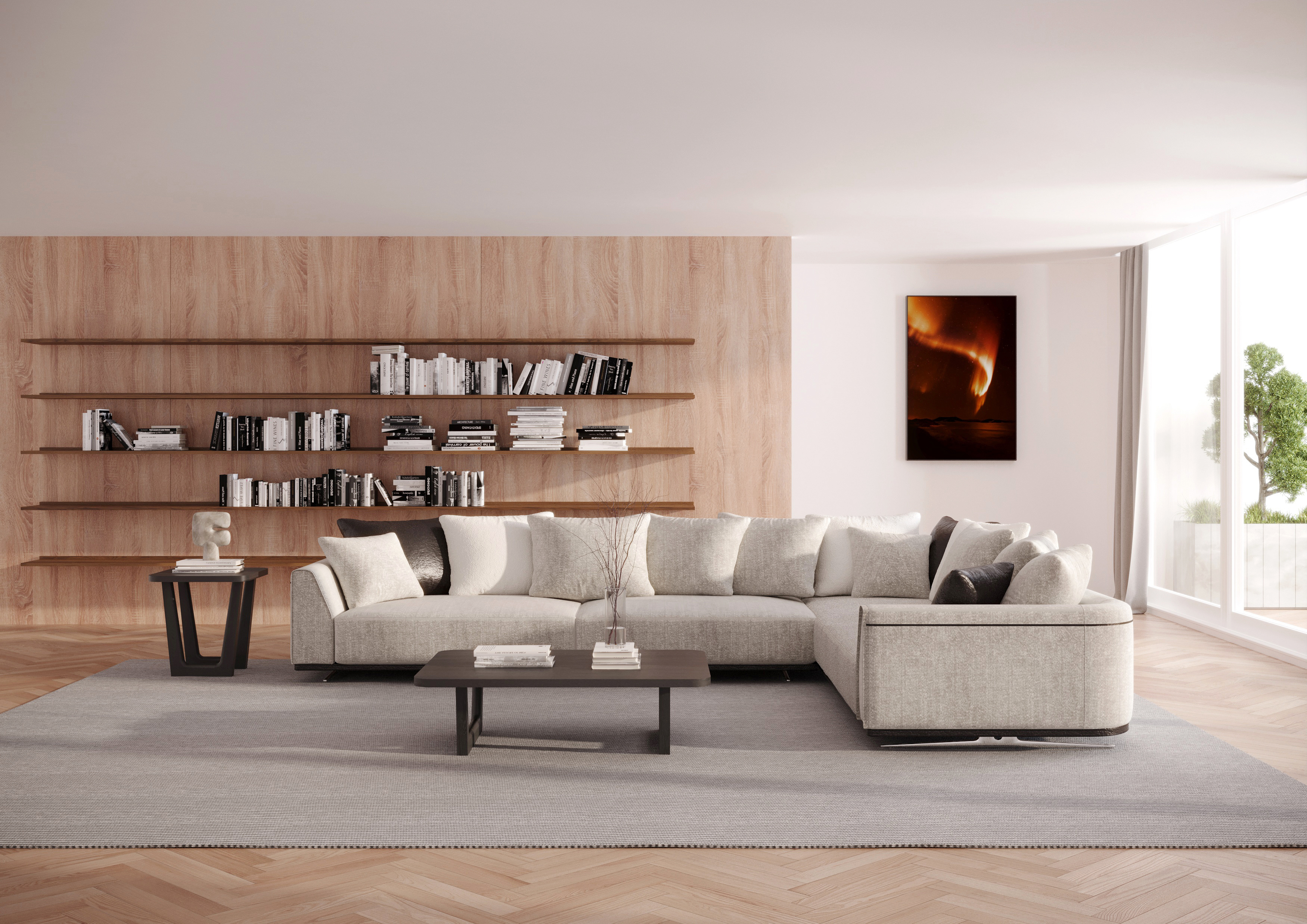 Designed for Moho and launched in 2025. Designed for customer who values sophistication, tactile textures, and timeless appeal. Aurora sofa captures Italian sophistication style with stunning craftsmanship and striking, eye-catching details. Showcasing a blend of timeless design and modern appeal, perfect for those who appreciate refined style and artisanal quality.